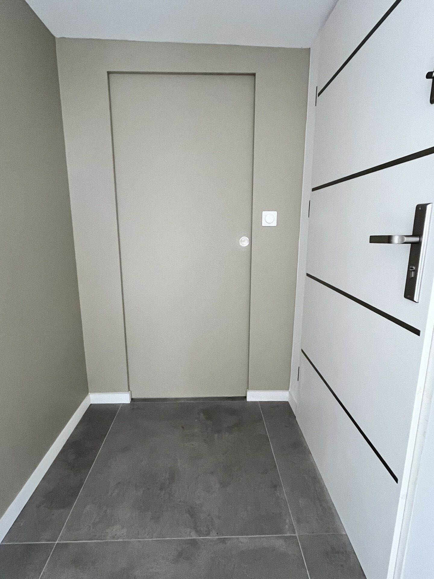 Porte à galandage âme pleine, pré peinte, à poser avec le châssis invisible en plaque de plâtre PURE ESPACE.