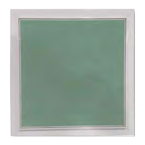 • d’un ouvrant affleurant réalisé par un cadre aluminium et un remplissage en plaque de plâtre hydrofuge d’épaisseur 12.5mm